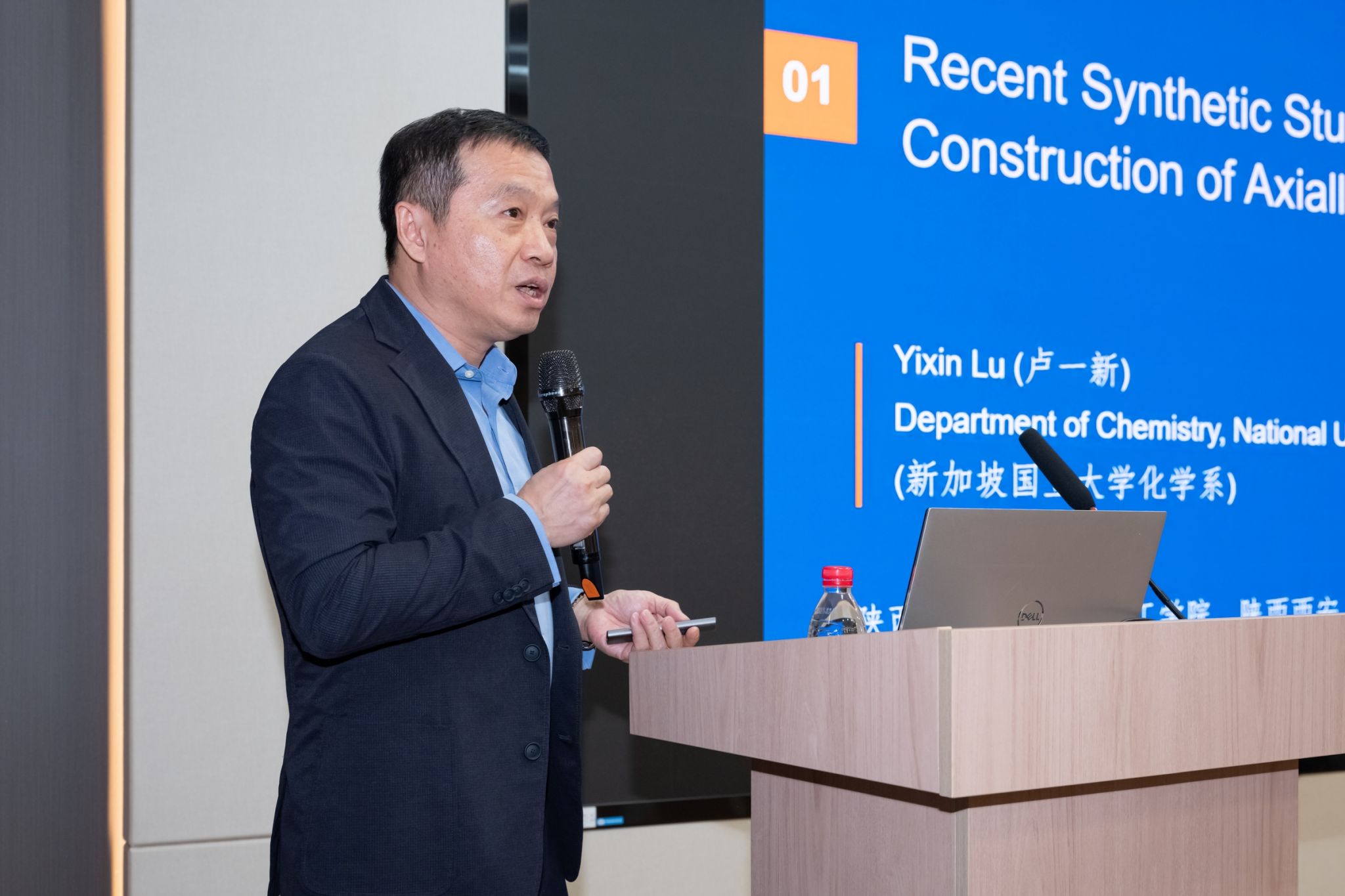 10月16日,应化学化工学院和应用表面与胶体化学教育部重点实验室邀请,新加坡国家科学院院士、新加坡国立大学(National University of Singapore)卢一新教授来访,并在陕西师范大学新概念传感器与分子材料研究院一层报告厅作题为“Recent synthetic studies towards the construction of axially chiral molecules”的学术报告。